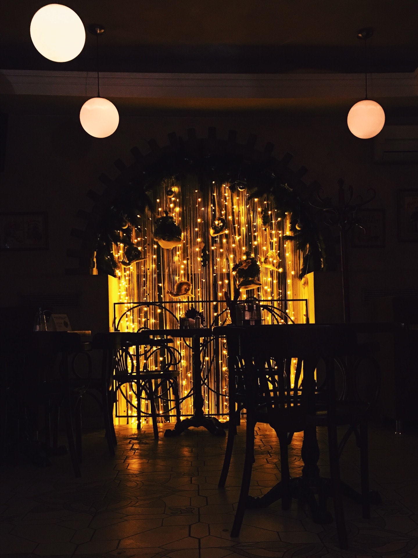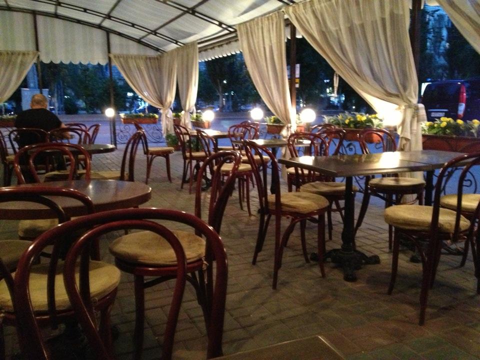 Внутри прохладно и уютно.Но чаще сидим на улице(на вечер предлагают пледы).кухня радует.бар тоже)кроме Мохито.официантам не хватает улыбок больше и подходить к столикам чаще